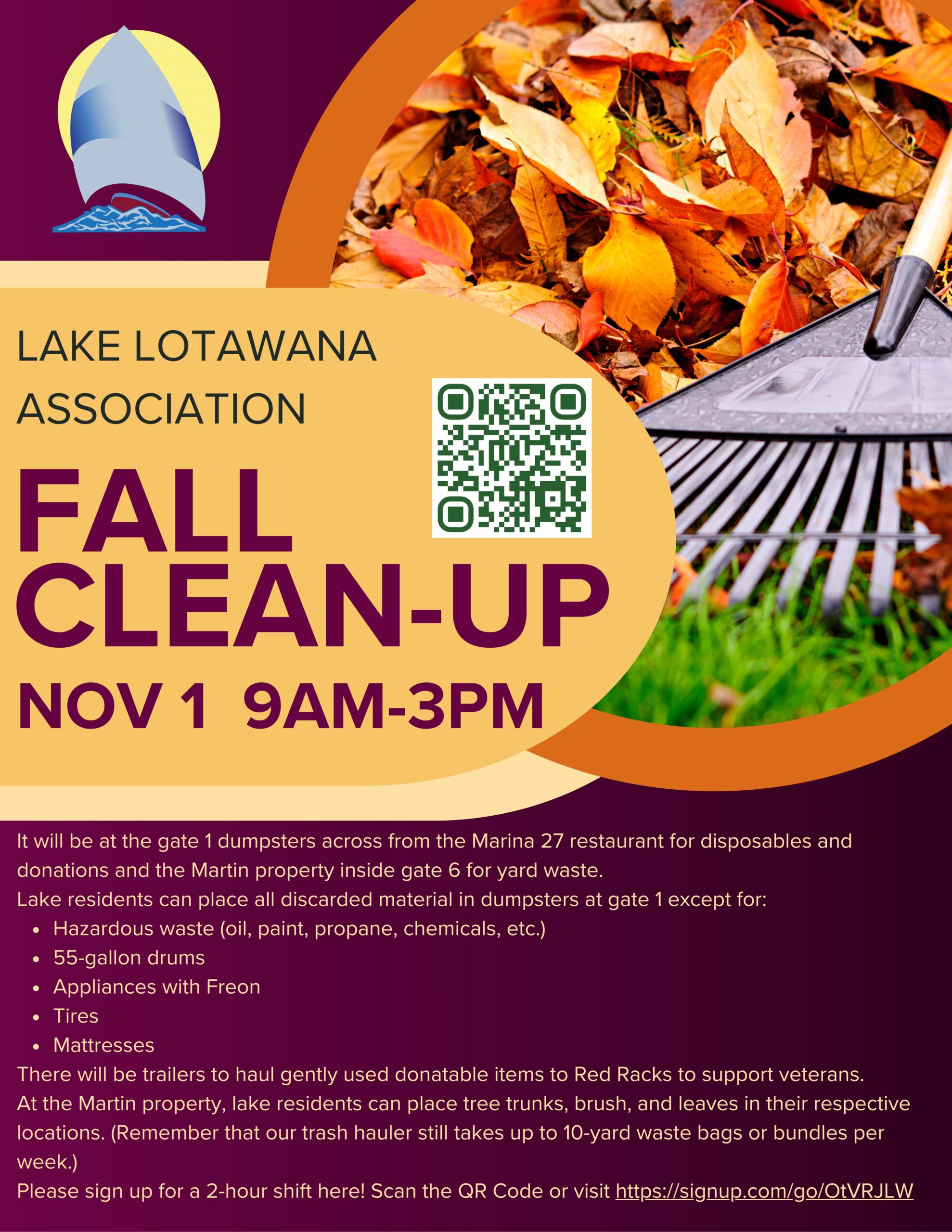 Association Fall Clean-Up / News from the Association / By Lake Lotawana Click HERE to register for the Fall Clean-Up.