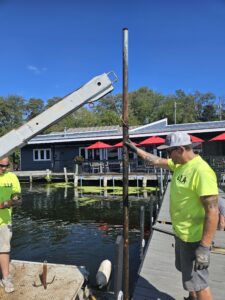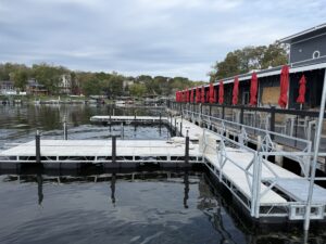 Williams Construction started installing the new docks on October 13th, which will be all done when you receive this addition. In the next edition I’ll be able to share the final installed photos. There will be four total fingers off the new walk ramp from the facility deck. The new docks as pictured below have metal popsicles with bumpers and mooring cleats. The walk surface is concrete blocks mirroring the gas docks. We now have safer and lower maintenance docks that expand the capacity for the busy months and events like the July 5th Music and Wood Boat Show. It will be fun to see everyone tying up to the new docks for lakeside fun as the great fall weather remaining provides outdoor entertainment opportunities.